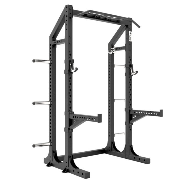 Con un diseño único, fabricado con un marco de acero cuadrado de alta resistencia; el ILUS Versa Half Rack es una estación de trabajo ideal para realizar entrenamiento de fuerza con implementos libres, con ayuda de bancos o apoyos ubicados en una posición ideal espaciosa y con múltiples ventajas en la posición de sus accesorios.